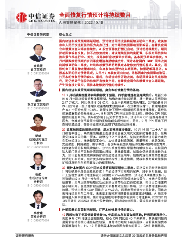 【中信证券】【20221016】A股策略聚焦:全面修复行情预计将持续数月-31页