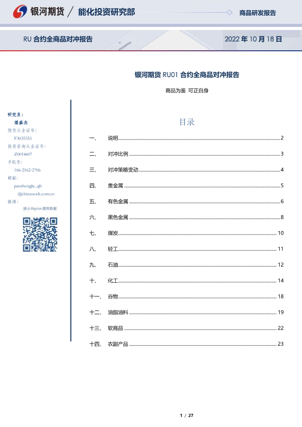 【银河期货】【20221018】RU01合约全商品对冲报告20221018-27页