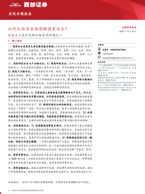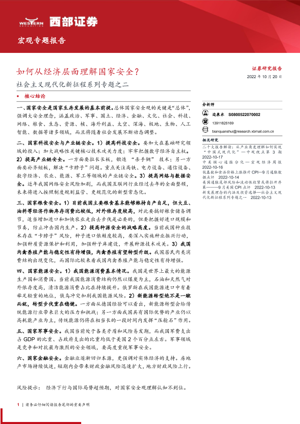 【西部证券】【20221020】社会主义现代化新征程系列专题之二:如何从经济层面理解国家安全-20页