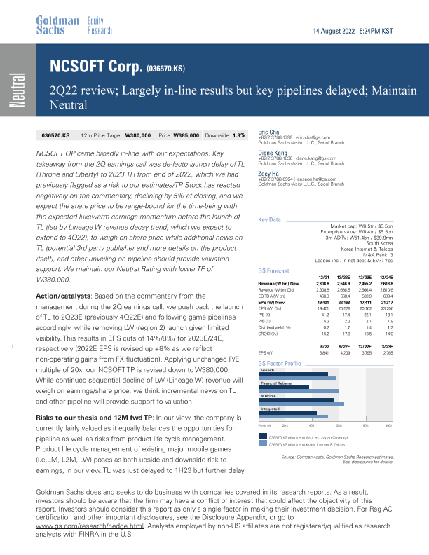 【Goldman Sachs】【20220814】view; Largely in-line results but key pipelines delayed; Maintain Neutral-12页