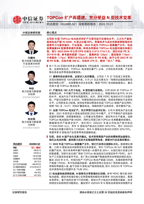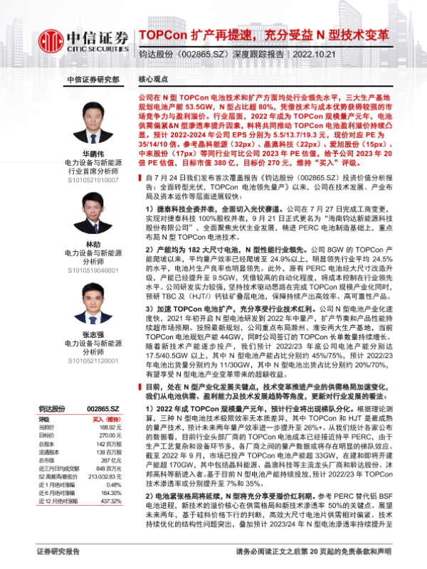 【中信证券】【20221021】深度跟踪报告:TOPCon扩产再提速,充分受益N型技术变革-21页