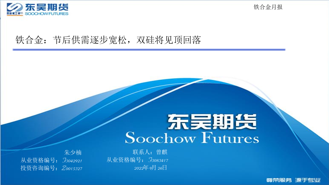 【东吴期货】【20220926】铁合金:节后供需逐步宽松,双硅将见顶回落-20页