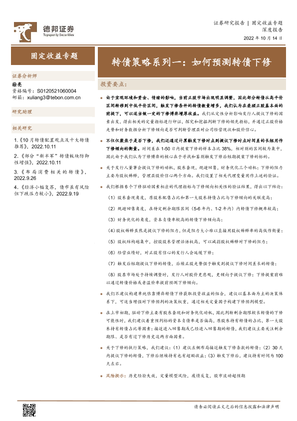 【德邦证券】【20221014】转债策略系列一:如何预测转债下修-17页