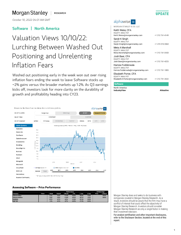【Morgan Stanley】【20221010】Software Valuation Views 101022 Lurching Between Washed Out Positioning and Unrelenting Inflation Fears-13页