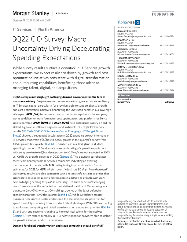 【Morgan Stanley】【20221011】IT Services 3Q22 CIO Survey Macro Uncertainty Driving Decelerating Spending Expectations-19页