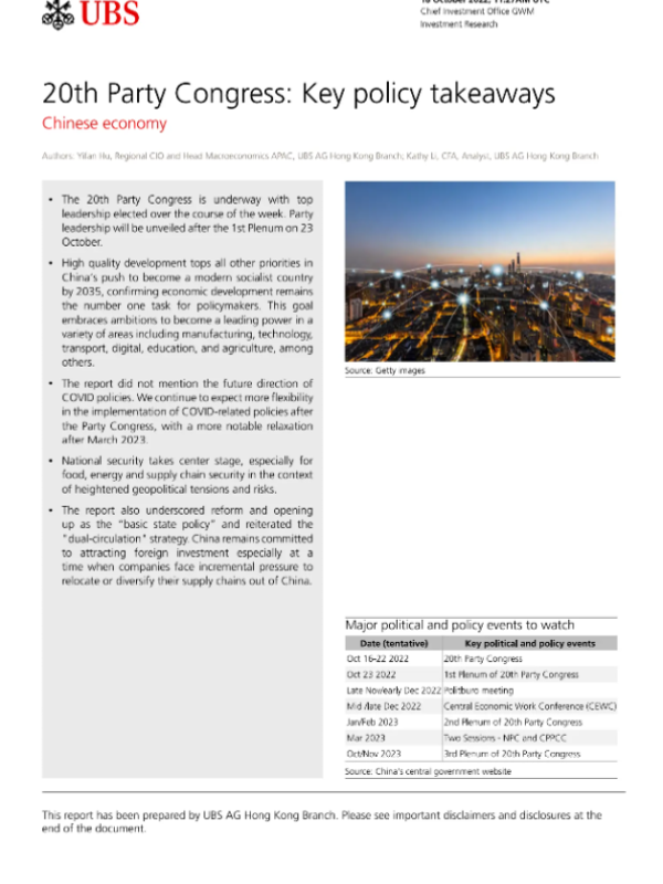【UBS AG Hong Kong Branch】【2022】20th Party Congress: Key policy takeaways-2页
