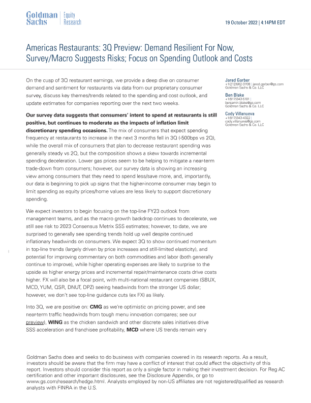 【Goldman Sachs】【20221019】For Now, Survey_Macro Suggests Risks; Focus on Spending Outlook and Costs-20页