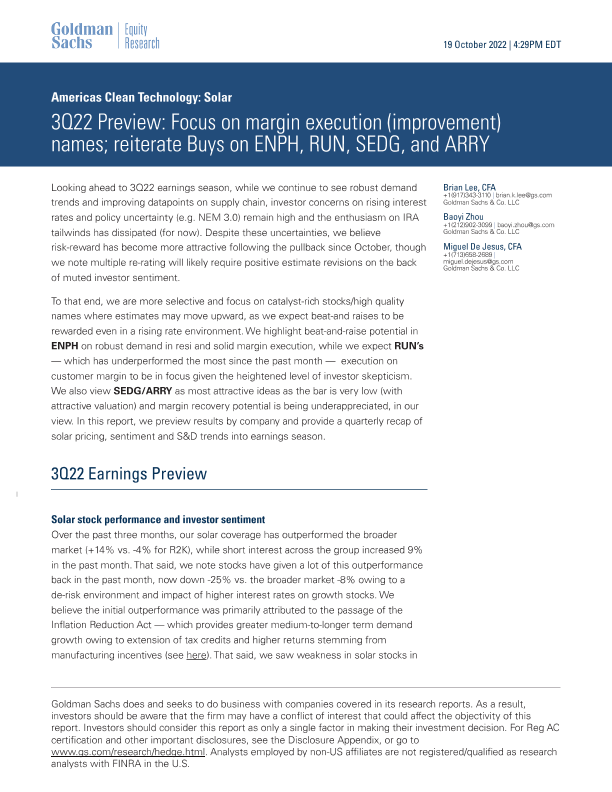 【Goldman Sachs】【20221019】3Q22 Preview Focus on margin execution(improvement) names; reiterate Buys on ENPH, RUN, SEDG, and ARRY-37页