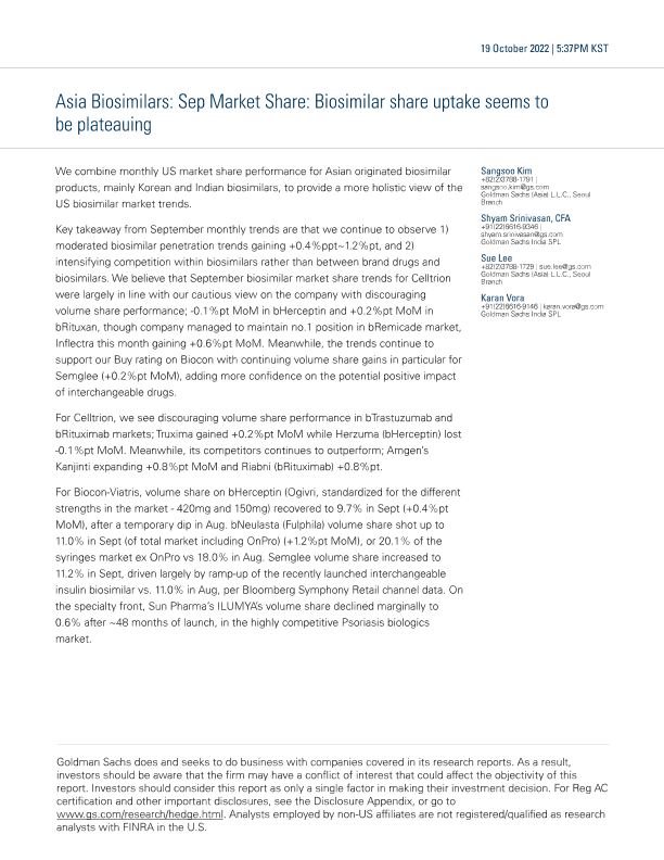 【Goldman Sachs】【20221019】osimilars_ Sep Market Share_ Biosimilar share uptake seems to be plateauing-11页