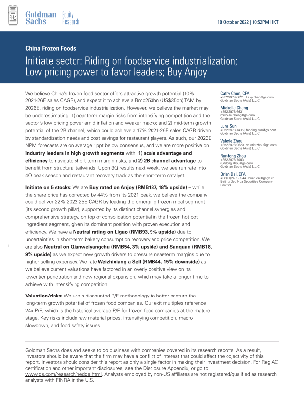 【Goldman Sachs】【20221018】中国冷冻食品行业发展潜力及投资建议:工业化推动,低定价能力有利于领导者,买入安井-101页