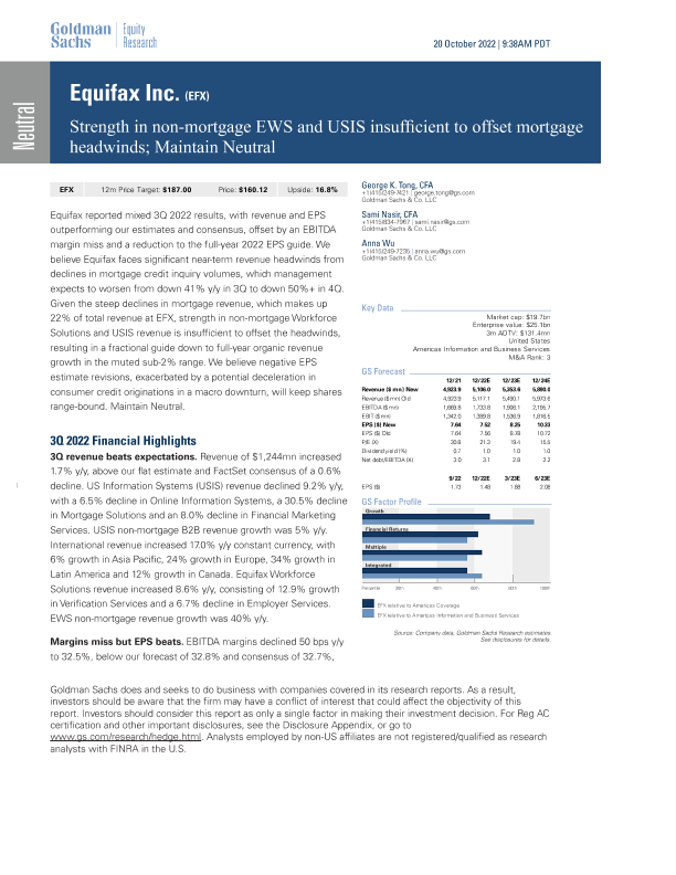 【Goldman Sachs】【20221020】EWS and USIS insufficient to offset mortgage headwinds; Maintain Neutral-14页