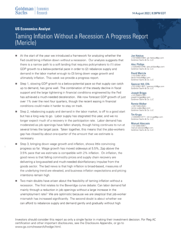 【Goldman Sachs】【20220814】Taming Inflation Without a Recession A Progress Report-17页