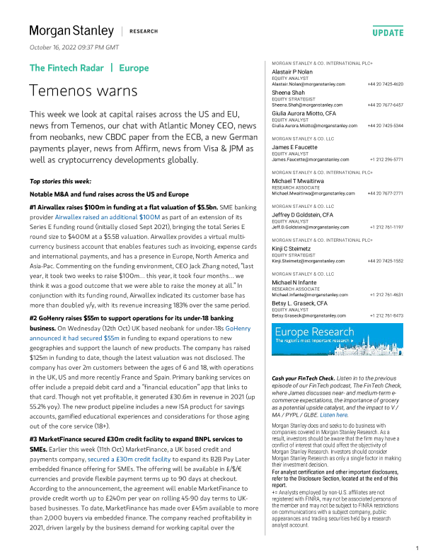 【Morgan Stanley】【202210】Morgan Stanley-The Fintech Radar Temenos warns-36页