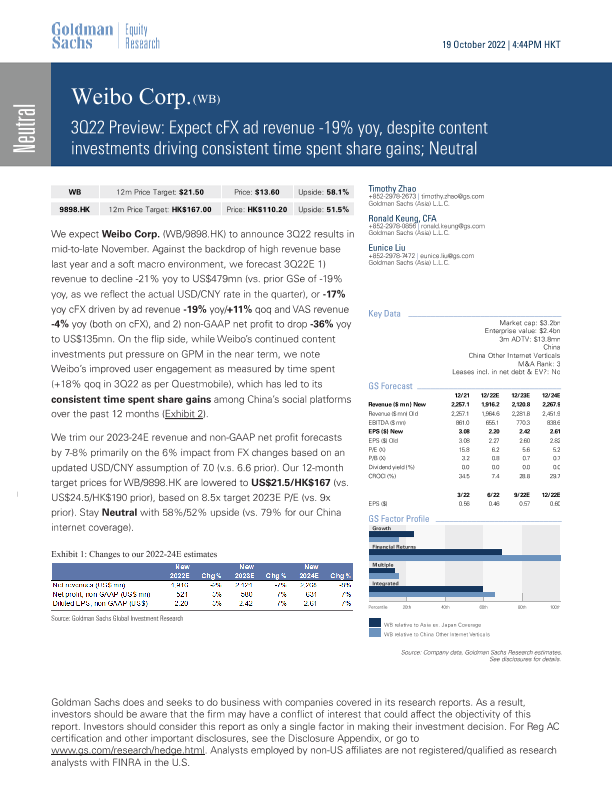 【Goldman Sachs】【20221019】19% yoy, despite content investments driving consistent time spent share-10页