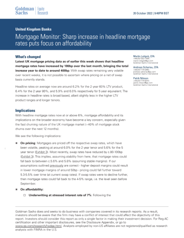 【Goldman Sachs】【20221020】Sharp increase in headline mortgage rates puts focus on affordability-16页