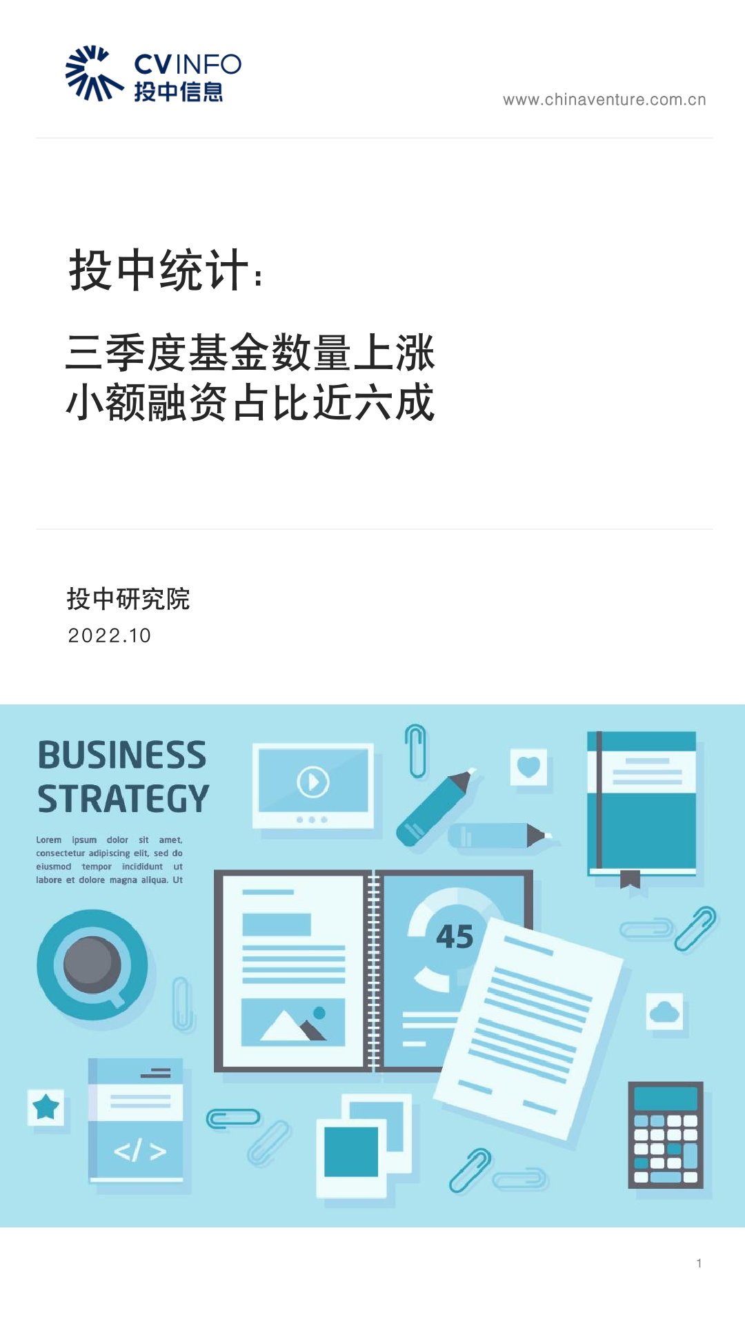 【投中研究院】【202210】三季度基金数量上涨,小额融资占比近六成-16页