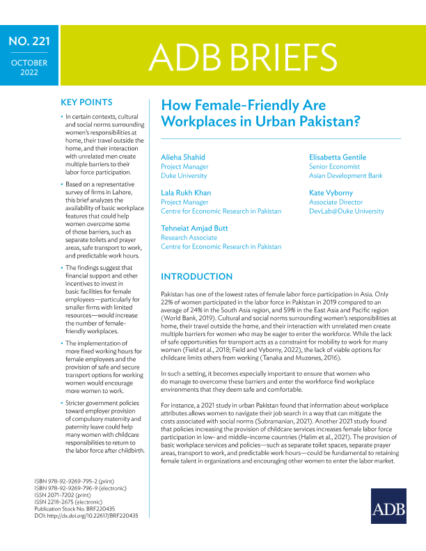 【Asian Development Bank】【202210】How Female-Friendly Are Workplaces in Urban Pakistan?-8页