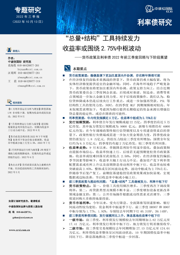 【中诚信国际】【20221013】货币政策及利率债2022年前三季度回顾与下阶段展望-15页