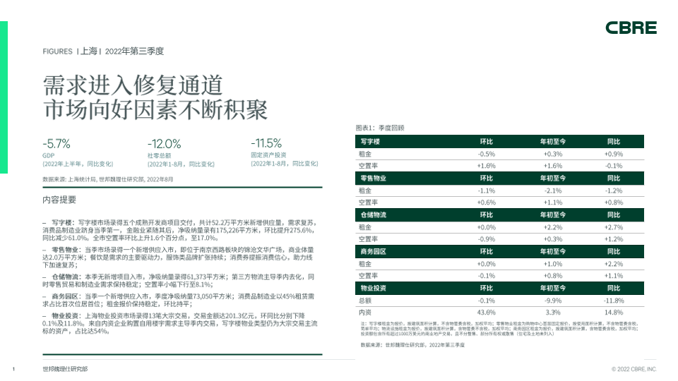 【世邦魏理仕研究部】【2022Q3】CBRE-上海房地产市场报告 2022年第三季度-7页