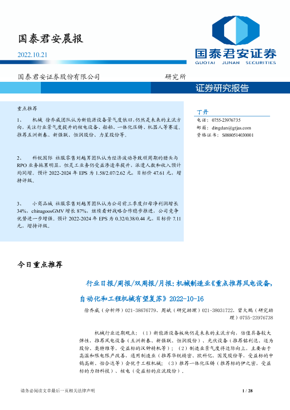 【国泰君安证券】【20221021】晨报20221021-国泰君安-28页