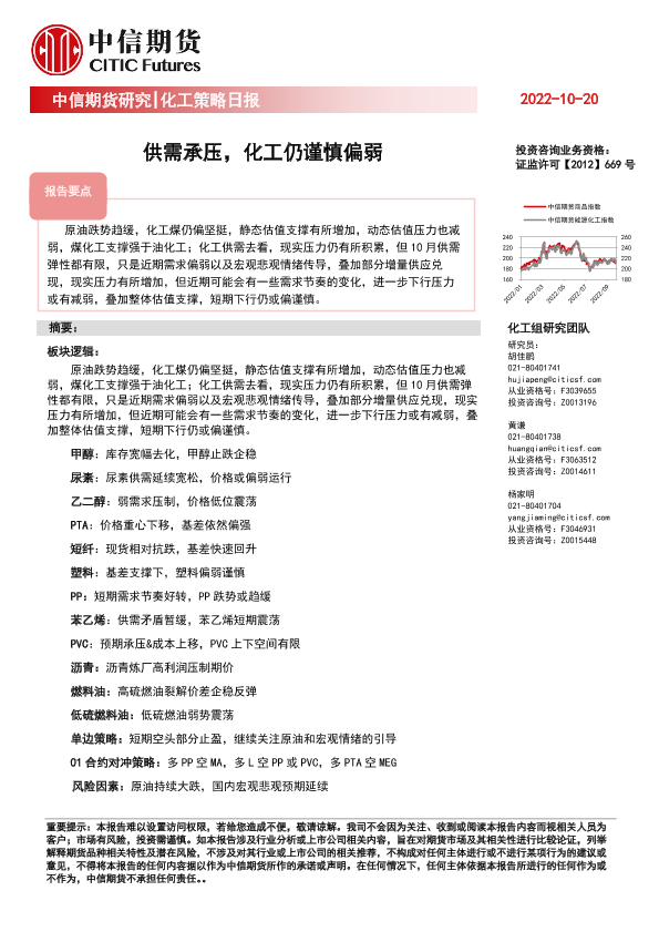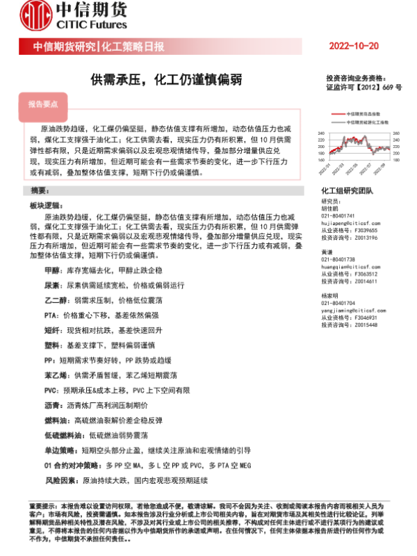 【中信期货】【20221020】化工策略日报:供需承压,化工仍谨慎偏弱-20页