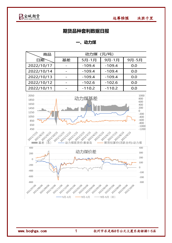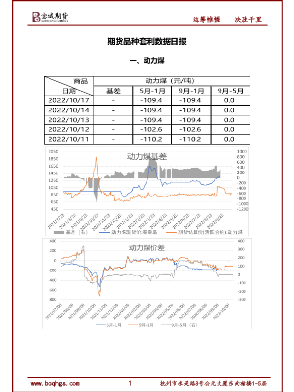 动力煤 套利数据 市场价格 日报 期货