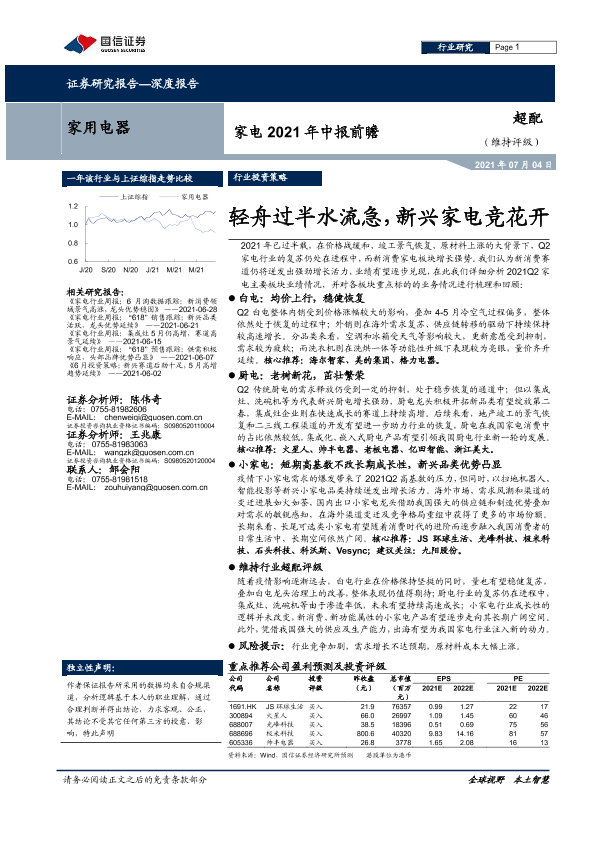 【国信证券】【20210704】家用电器行业2021年中报前瞻:轻舟过半水流急,新兴家电竞花开-14页
