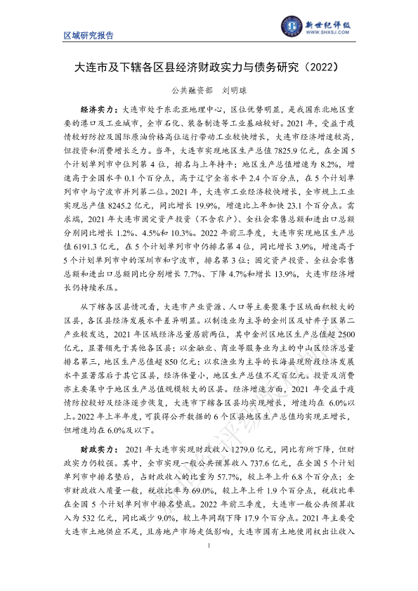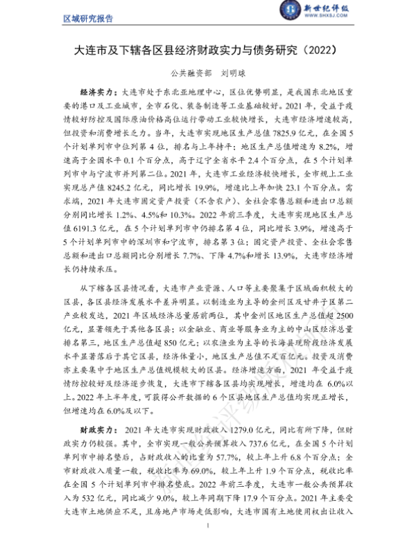 【新世纪评级】【2022】大连市及下辖各区县经济财政实力与债务研究(2022)-24页