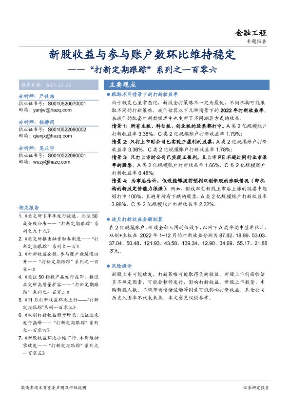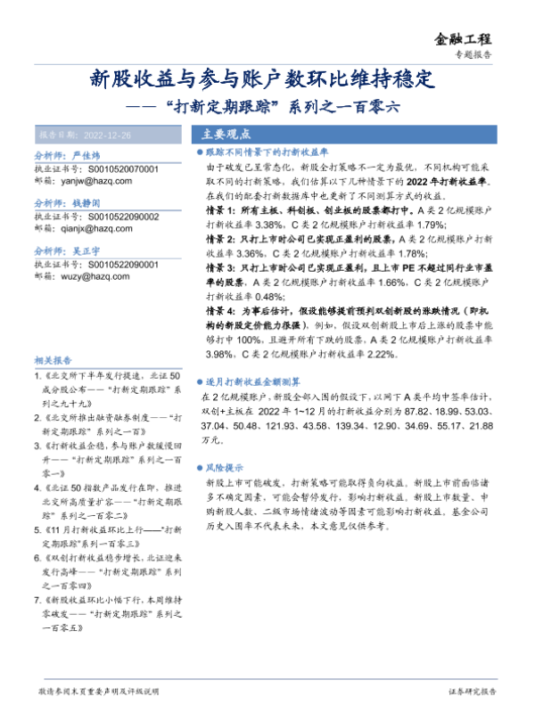 参与账户数 打新策略 新股收益 证券研究 金融市场