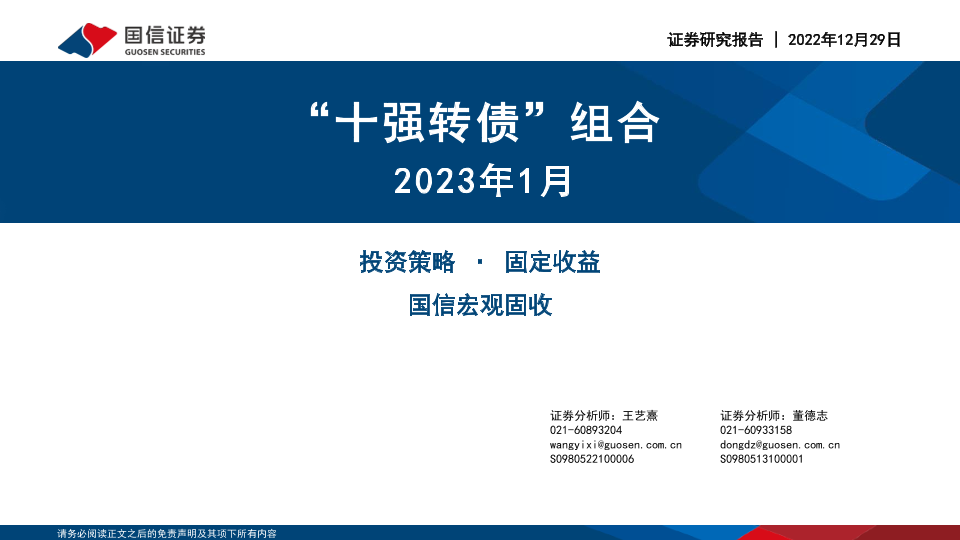 【国信证券】【20221229】“十强转债”组合:2023年1月-30页