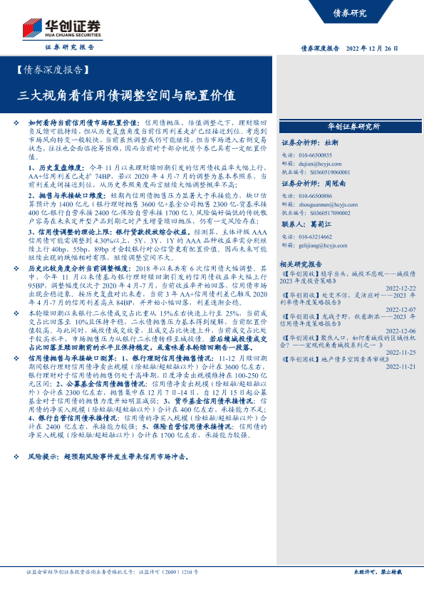【华创证券】【20221226】三大视角看信用债调整空间与配置价值-15页