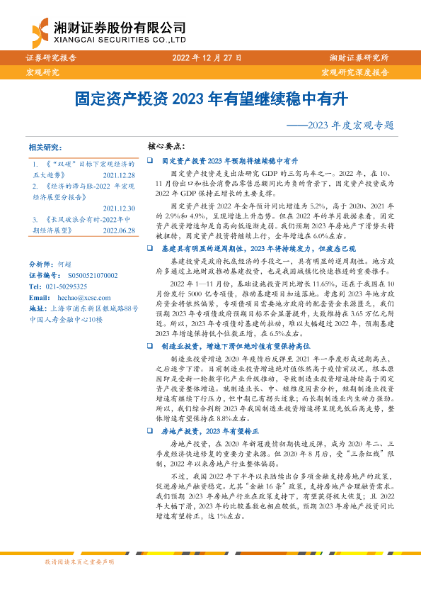 【湘财证券】【20221227】2023年度宏观专题:固定资产投资2023年有望继续稳中有升-24页