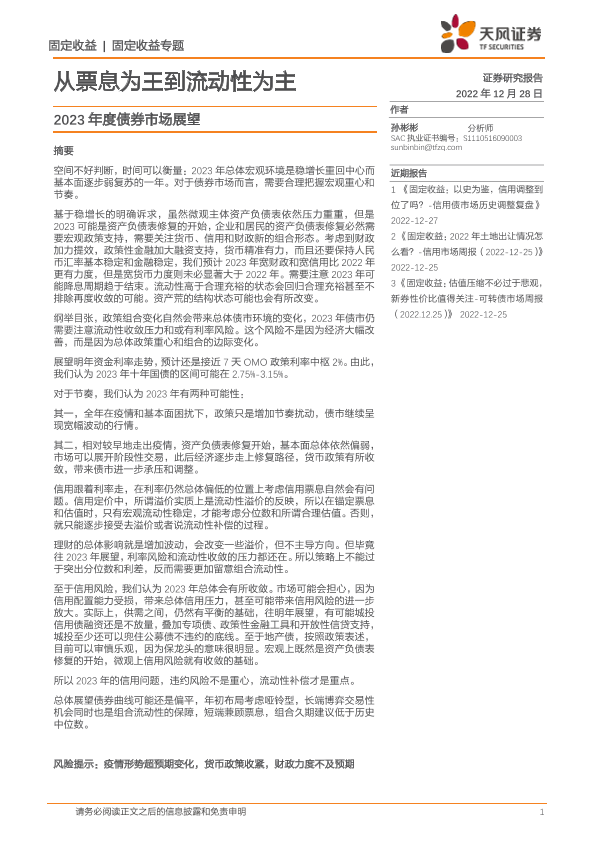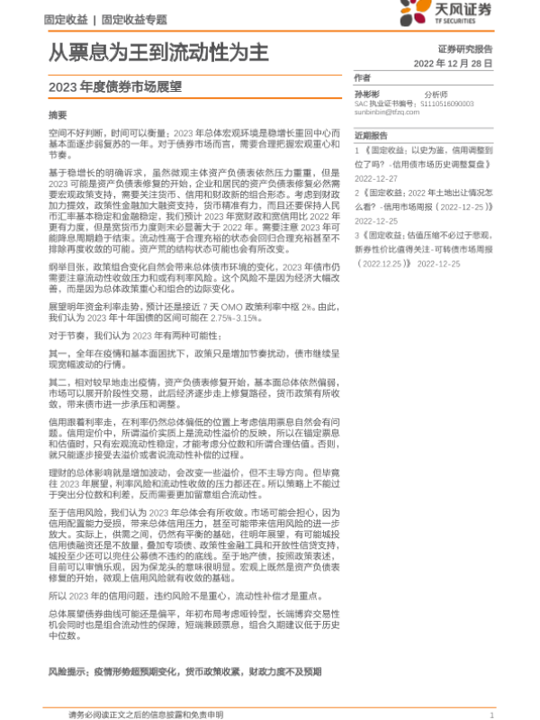 【天风证券】【20221228】2023年度债券市场展望:从票息为王到流动性为主-15页