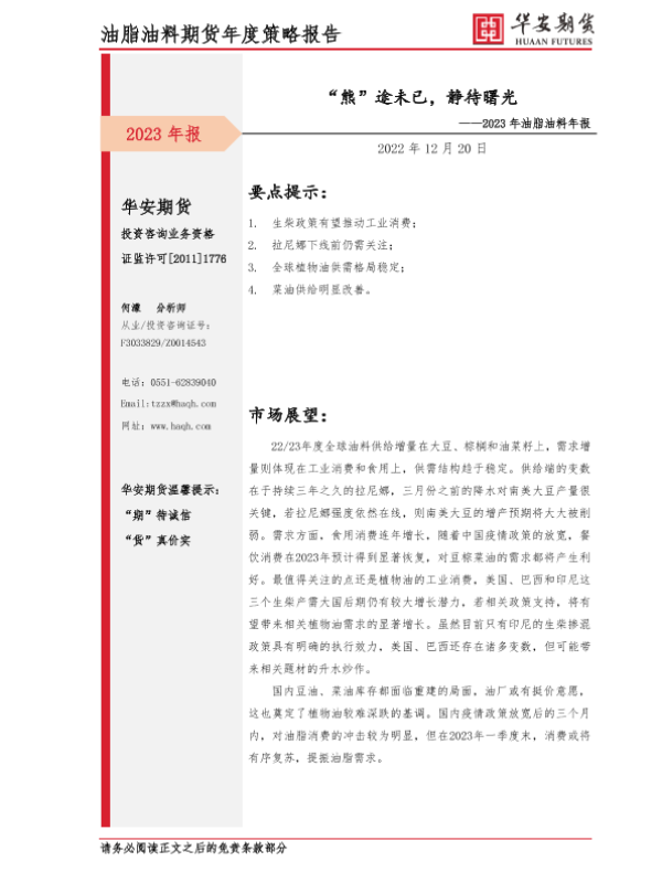 【华安期货】【20221220】2023年油脂油料年报:“熊”途未已,静待曙光-18页