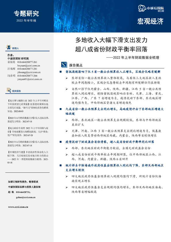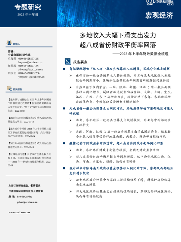 【中诚信国际】【20220801】多地收入大幅下滑支出发力,超八成省份财政平衡率回落——2022年上半年财政数据全梳理-12页