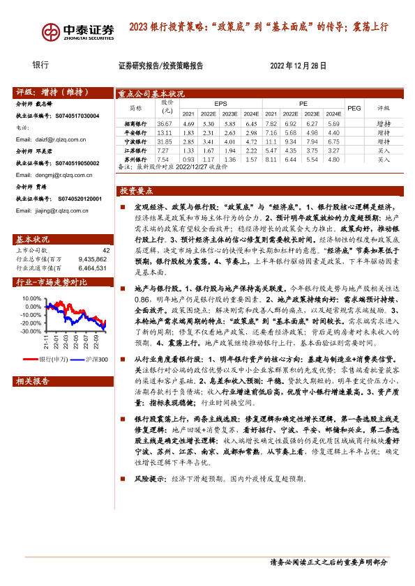 【中泰证券】【20221228】2023银行投资策略:“政策底”到“基本面底”的传导;震荡上行-49页