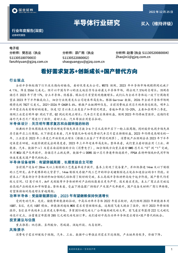 【国金证券】【20221225】半导体行业年度报告(深度):看好需求复苏+创新成长+国产替代方向-34页