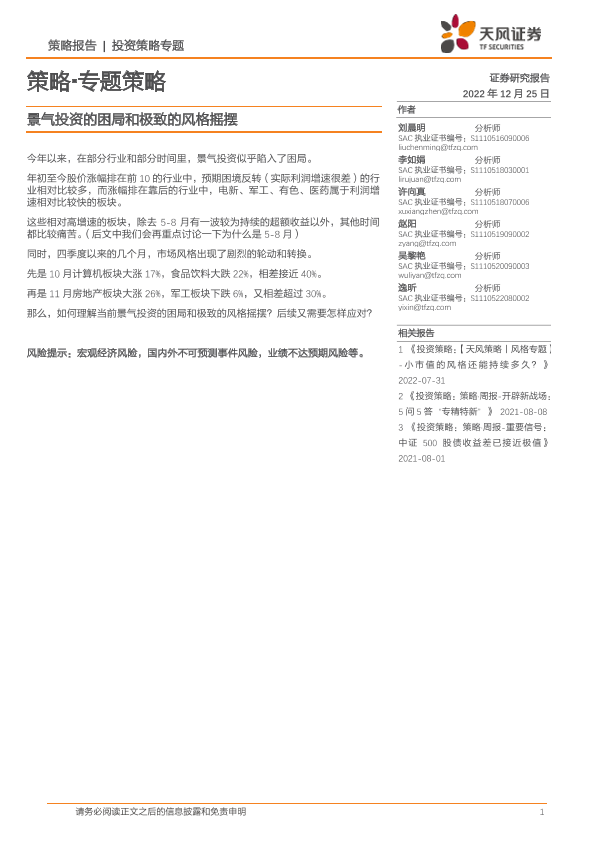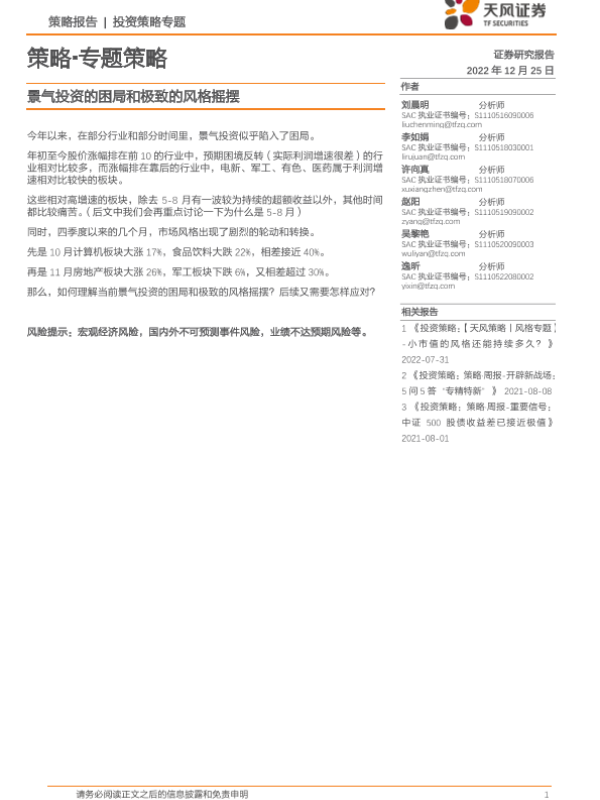 【天风证券】【20221225】策略·专题策略:景气投资的困局和极致的风格摇摆-15页