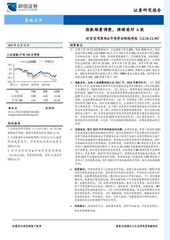 【财信证券】【20221225】财信宏观策略&市场资金跟踪周报:指数缩量调整,继续看好A股-18页