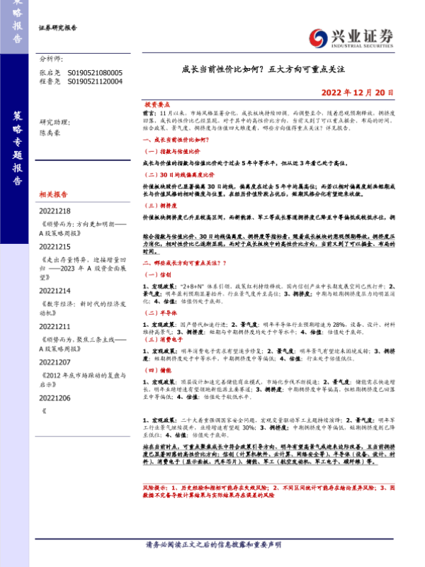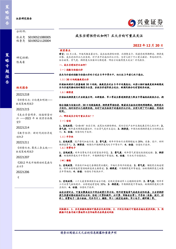 【兴业证券】【20221220】成长当前性价比如何?五大方向可重点关注-22页