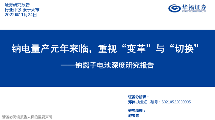 【华福证券】【20221124】电力设备及新能源:钠电深度报告,钠电量产元年来临,重视“变革”与“切换”-37页