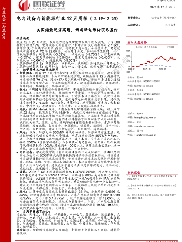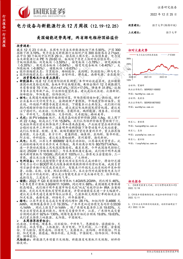 【国联证券】【20211225】电力设备与新能源行业12月周报:美国储能逆势高增,两省绿电维持顶格溢价-20页
