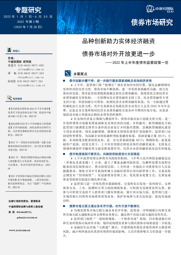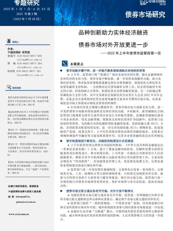 【中诚信国际】【20220630】品种创新助力实体经济融资,债券市场对外开放更进一步——2022年上半年度债市监管政策一览-13页