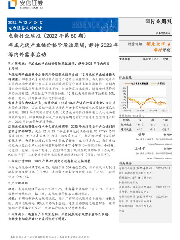 【安信证券】【20221224】电新行业周报(2022年第50期):年底光伏产业链价格阶段性崩塌,静待2023年海内外需求启动-16页
