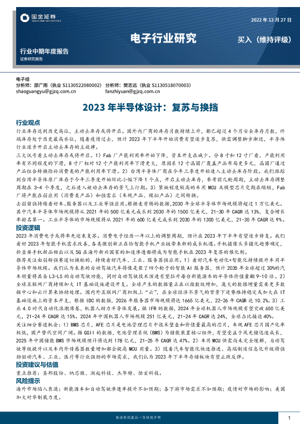 【国金证券】【20221227】电子行业2023年半导体设计:复苏与换挡-25页