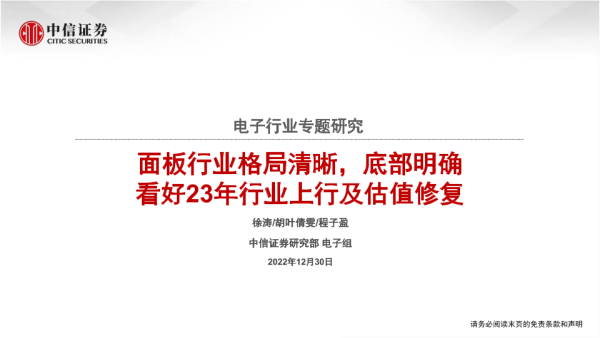 【中信证券】【20221230】电子行业专题研究:面板行业格局清晰,底部明确,看好23年行业上行及估值修复-90页