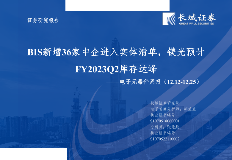 【长城证券】【20221225】电子元器件行业周报:BIS新增36家中企进入实体清单,镁光预计FY2023Q2库存达峰-48页