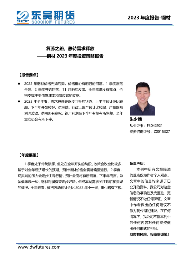 【东吴期货】【20221227】钢材2023年度投资策略报告:复苏之路,静待需求释放-19页