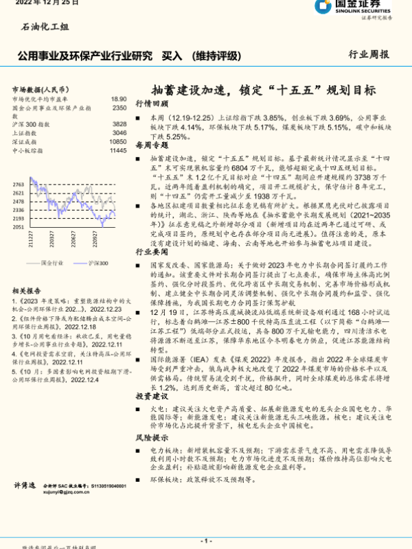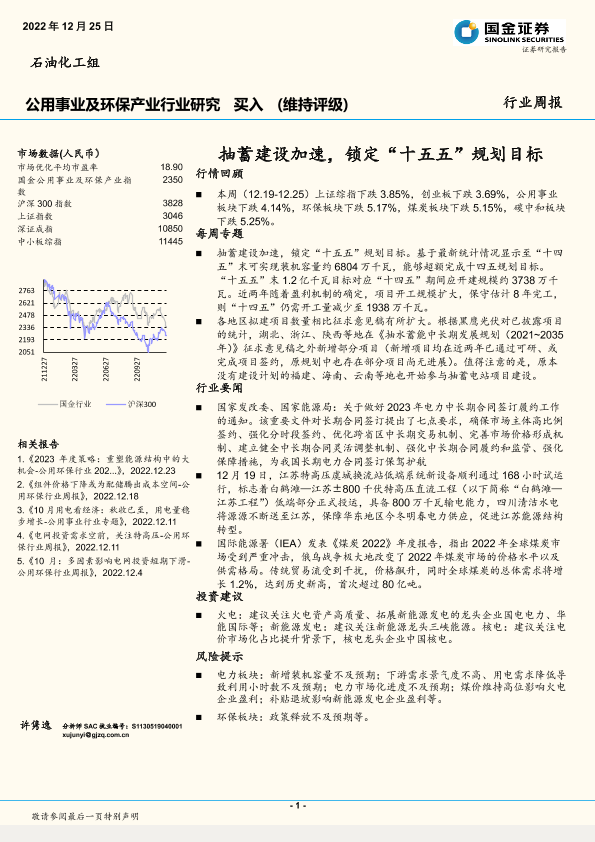 【国金证券】【20221225】公用事业及环保产业行业研究:抽蓄建设加速,锁定“十五五”规划目标-16页