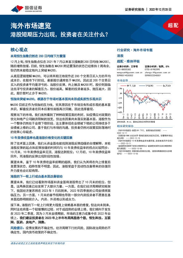 【国信证券】【20221225】海外市场速览:港股短期压力出现,投资者在关注什么-15页